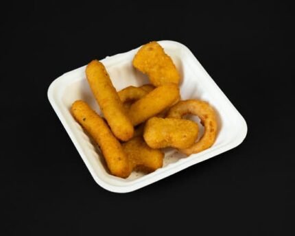 chicken nugget and mozzarella sticks and onion rings ( 3 each)